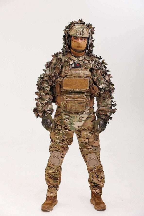 The modular system of the Ghillie capes allows them to be combined and used for different tasks.