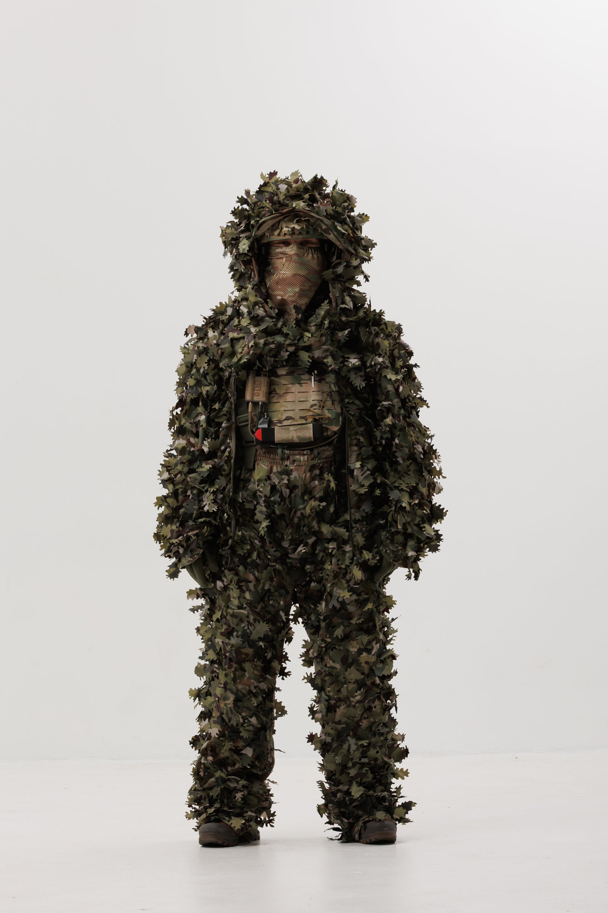 The Ghillie suit is made from a special mesh fabric that provides lightweight durability and excellent ventilation, preventing overheating even during active movement.