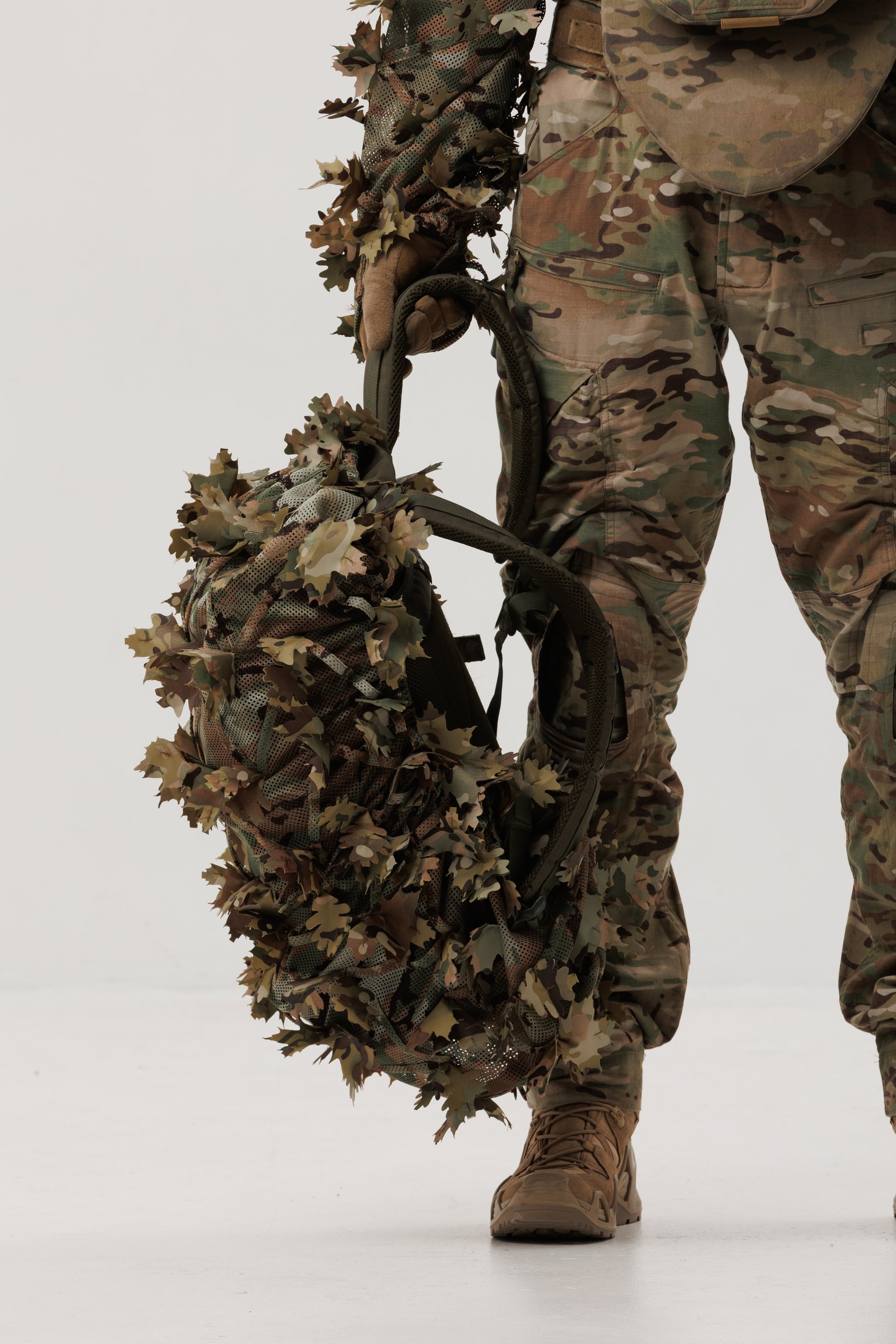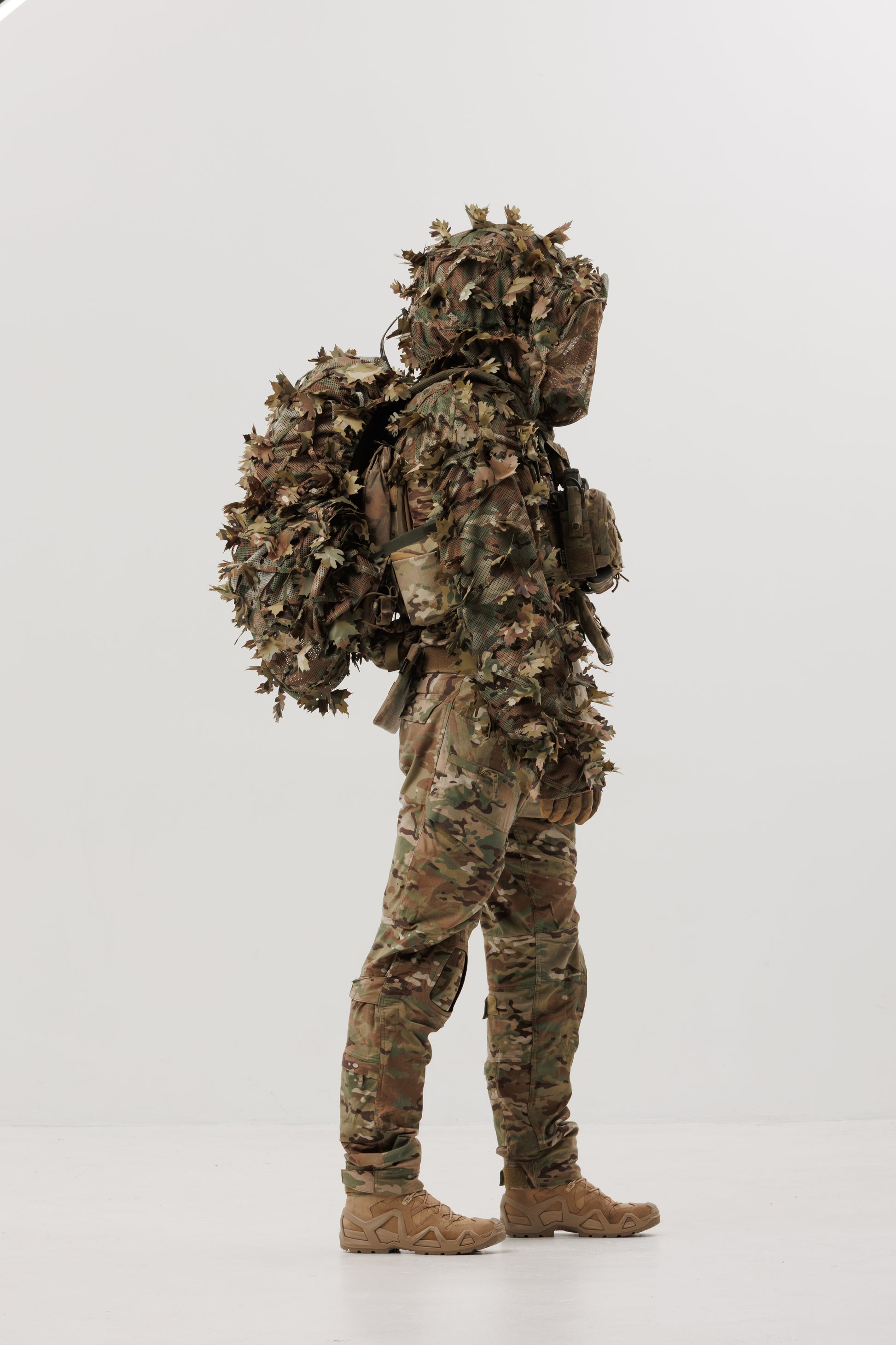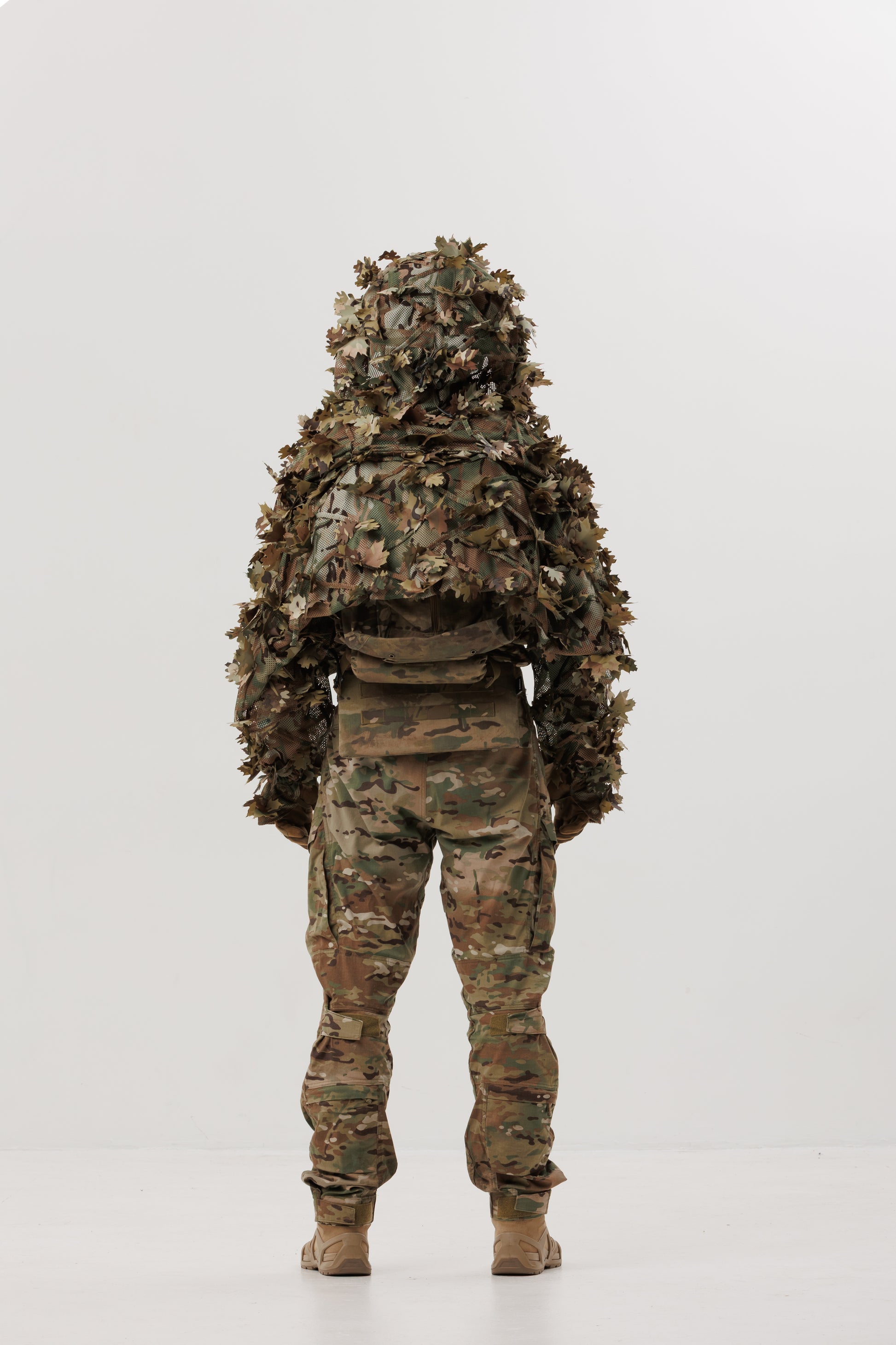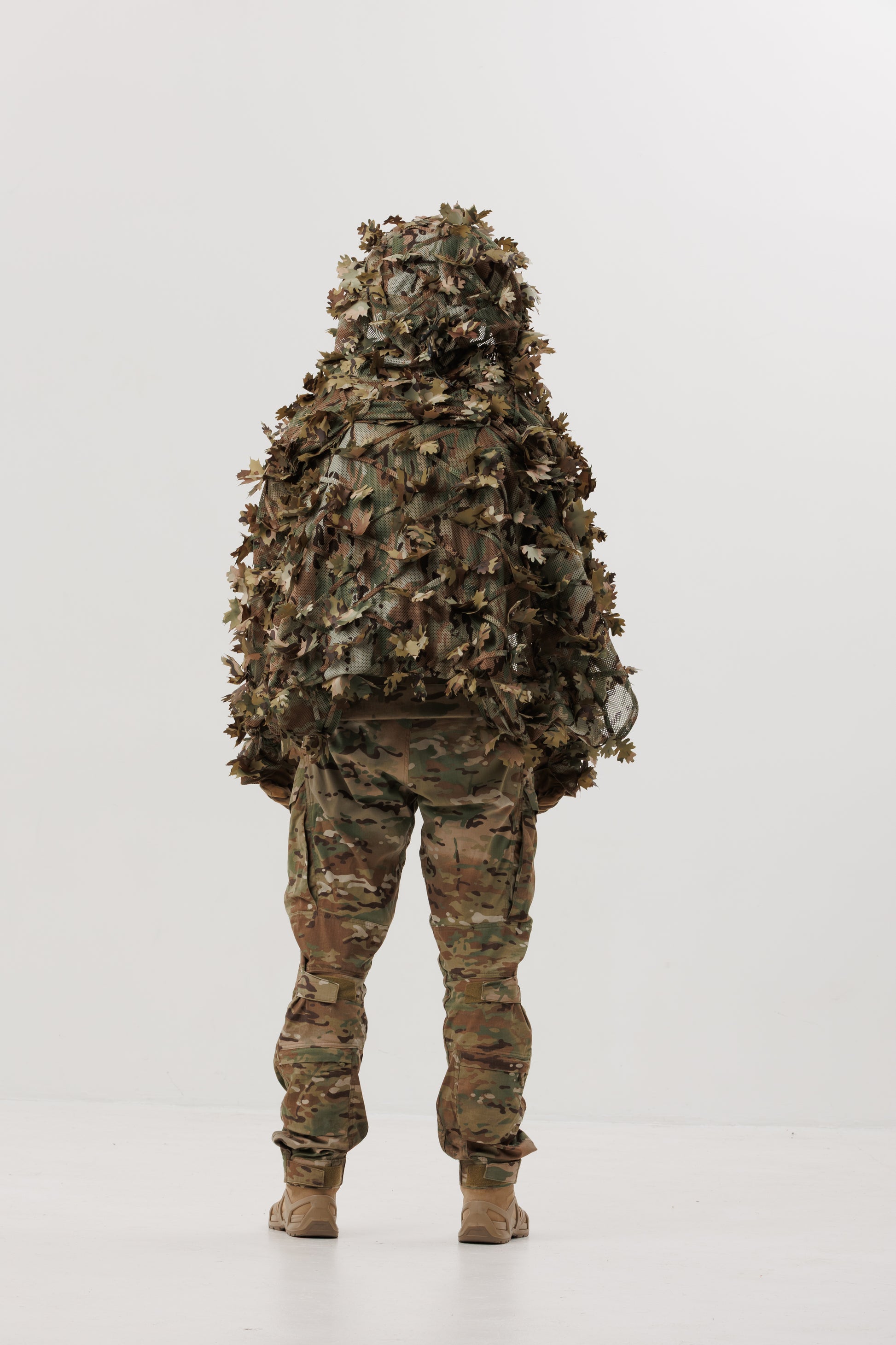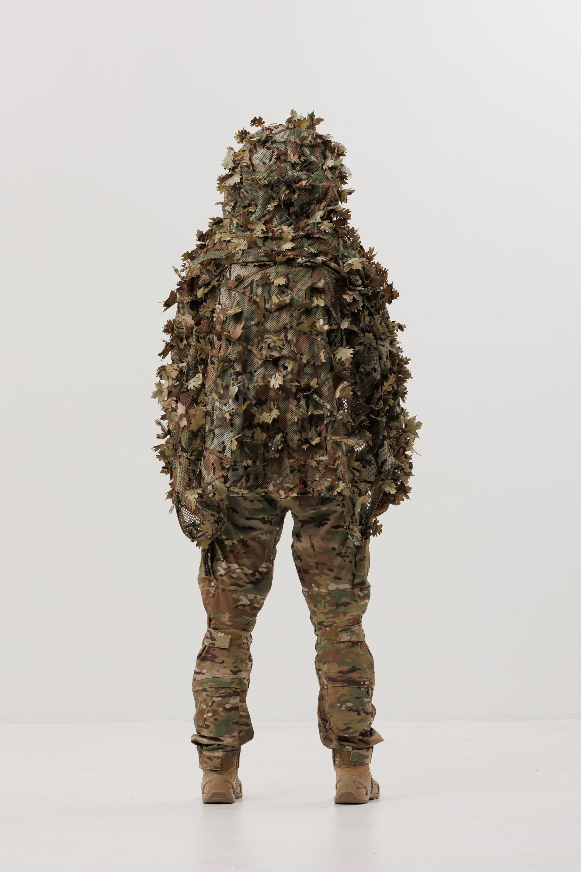 - Sewn-in leaves with double-sided coloring for maximum camouflage effect.