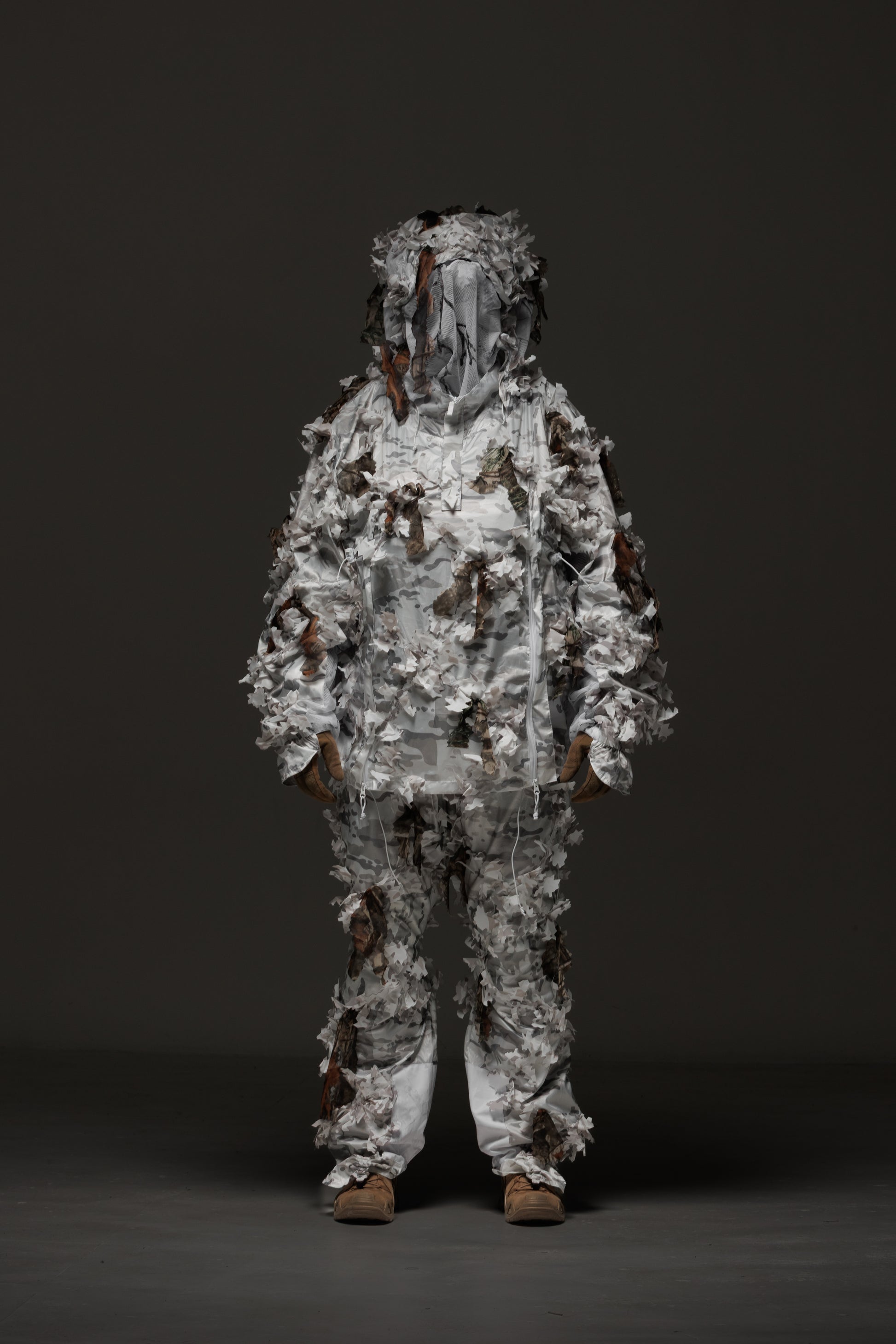 The Ghillie Pro Multicam alpine winter camouflage suit is a full camouflage suit consisting of a hooded jacket (anorak) and pants with suspenders, developed based on real feedback and operational needs of special operations forces, airsoft players and outdoor enthusiasts.